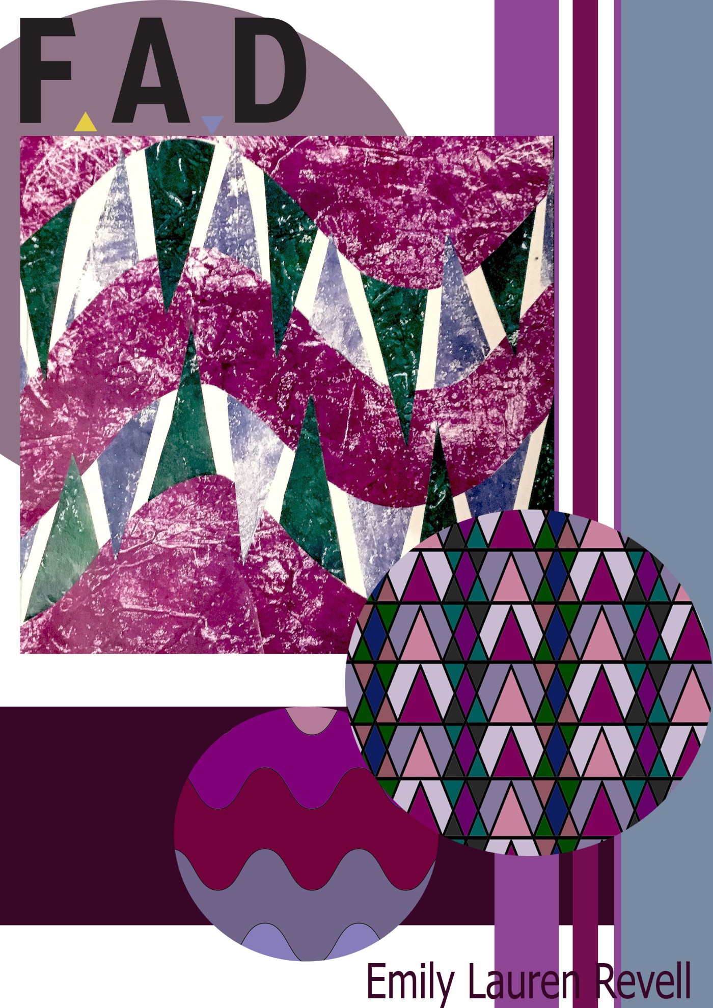 My final 4. I have added shapes and motifs into the portfolio page to increase the design detail and show what shapes were used and the colours aswell. i feel like by doing this my pages seem more fun and unique. i have used a similar technique to all 4 pages each having its own style by colour.